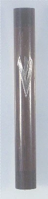 Round two-tone natural wood mezuzah case with 925 sterling silver letter shin. Self adhesive mounting.